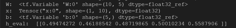 17 h_eval = session.run(h,feed_dict={x: np.random.rand(1,10)})