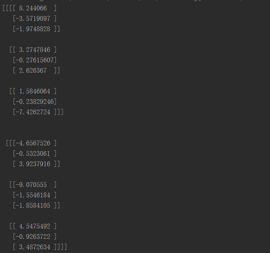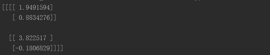 [ 1.9529393 3.4738922 0.24985534 -2.922786 ]]