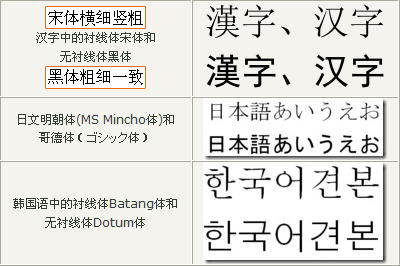 可以看出,我们平时所用的Georgia、Times New Roman等就属于Serif字体,而Arial、Tahoma、Verdana等则属于Sans Serif字体。对中文而言,同样存在这两大种类,很明显,宋体、细明体(繁体中常用)等就属于Serif,而黑体、幼圆等则属于Sans Serif。