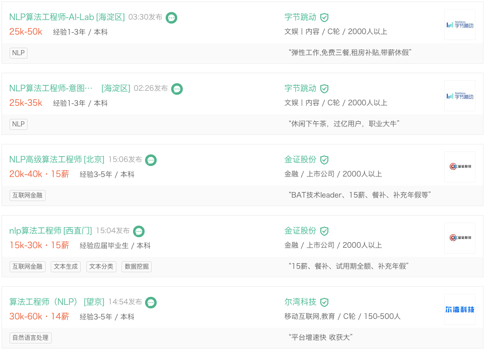 从企业的招聘需求中也可以看出来,如果是想要进大厂,NLP自然语言处理方面能力就更是标配了。