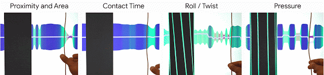 根据以上原则,我们利用智能织物架构,凭借感应距离、面积、接触时间、旋转和压力的能力打造交互技术。