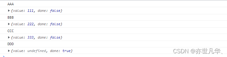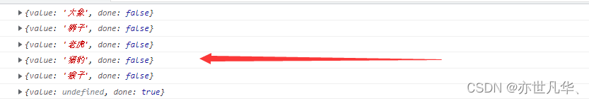 console.log(v);//打印是yield后面字符串的内容
