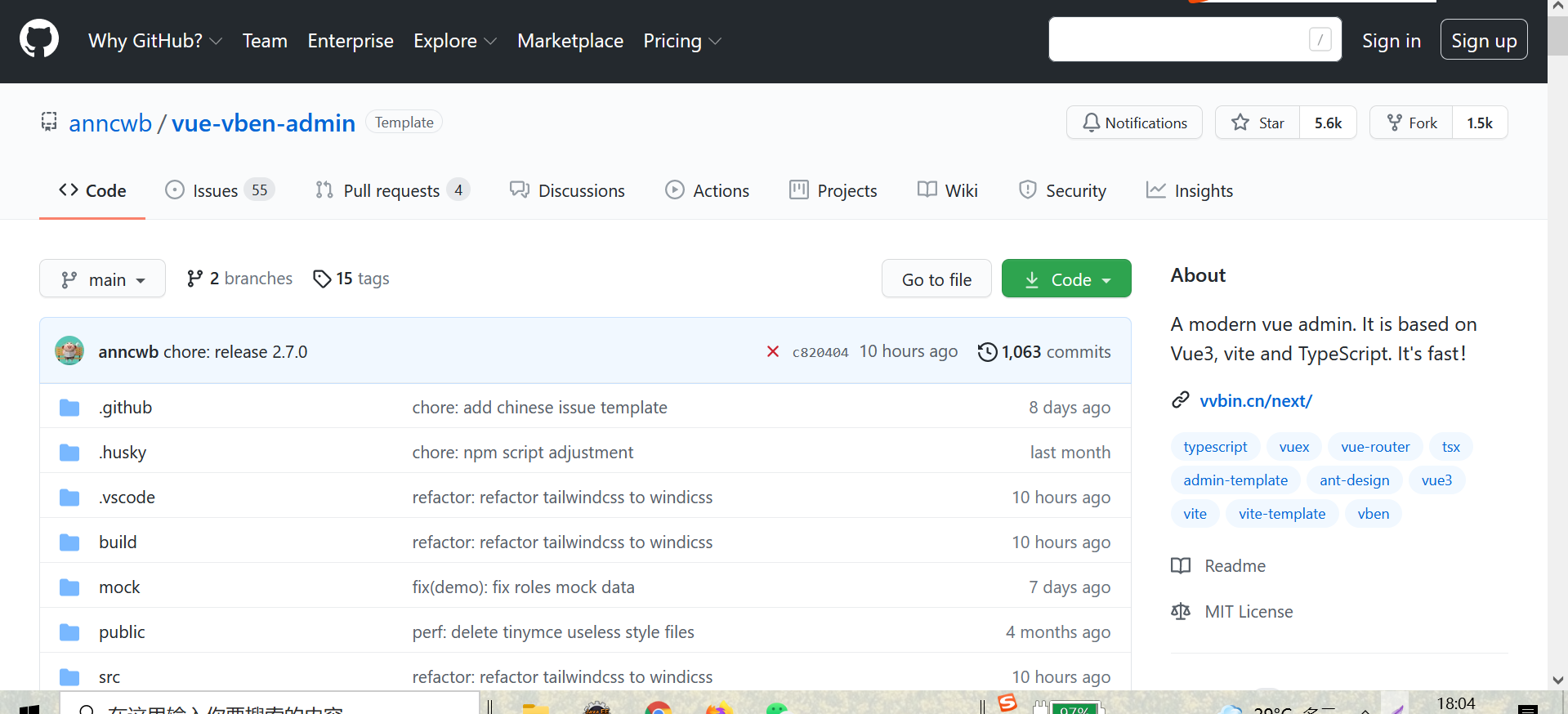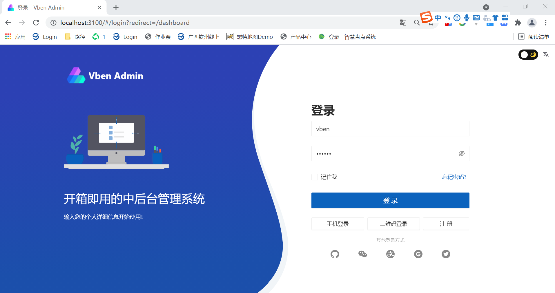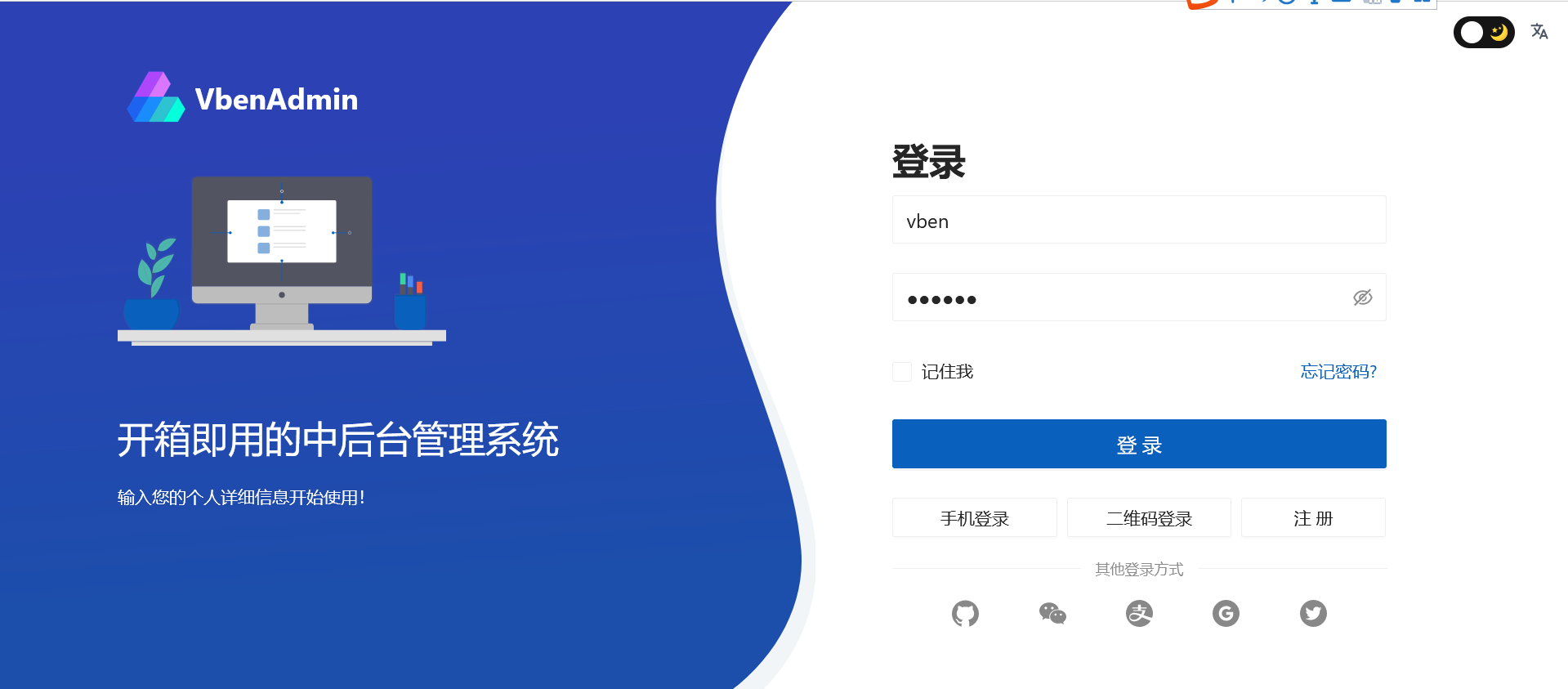 Vue Vben Admin 是一个免费开源的中后台模版。使用了最新的vue3,vite2,TypeScript等主流技术开发,开箱即用的中后台前端解决方案,也可用于学习参考。 Github地址:https://github.com/anncwb/vue-vben-admin 1:从github上面获取项目代码 2:将代码导入vscode,打开终端,安装依赖 进入到项目文件夹根目录底下,打开终端就直接进入了 如果没有进入,可以使用一下cd命令 安装依赖 运行 打开浏览器输入http://localhost:3100/ 兼容 vue2 的浏览器,一切免费,不收取任何费用,请放心使用。后续定期提供更新及维护,可供参考与学习。 打包简介