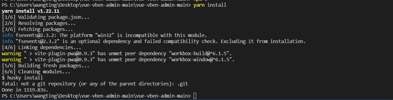 我比较习惯第一种。cd vue-vben-adminyarn install