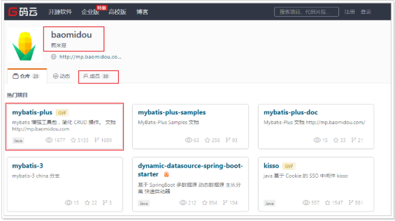 码云地址:baomidou: 苞米豆,为提高生产率而生!