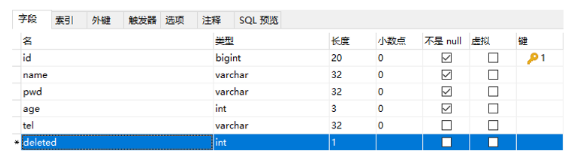①:数据库表中添加逻辑删除标记字段
