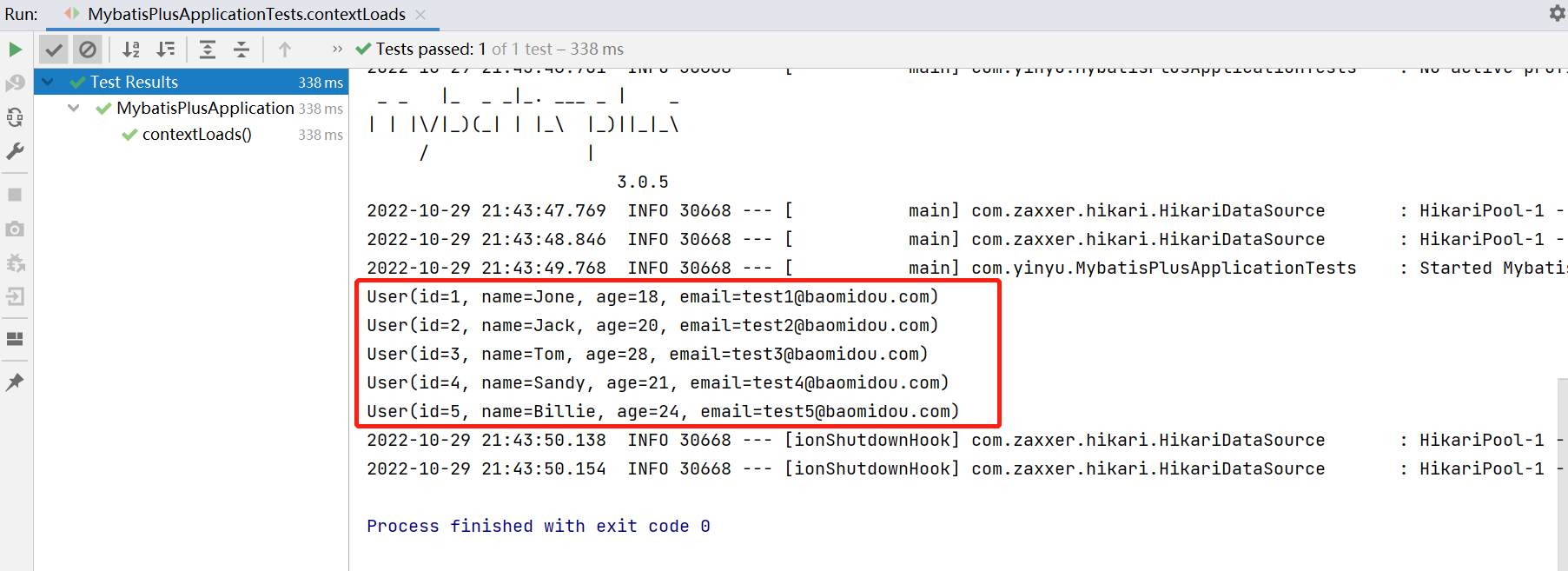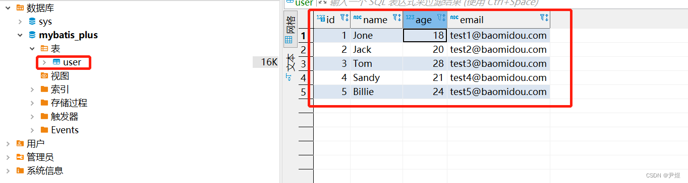 (1, 'Jone', 18, 'test1@baomidou.com'),