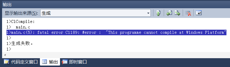 #error "This programme cannot compile at Windows Platform"那么错误信息如下: