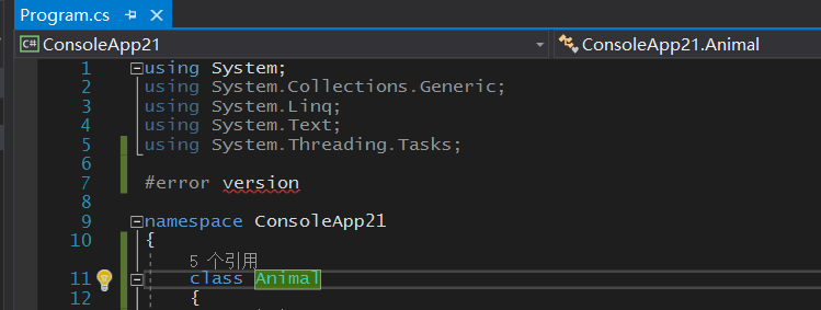 由于现在VS2019不再提供C#语言的设置,因此没有办法立即就看到它是采用什么样的语言版本,也就没有办法知道使用什么样的语法是符合的了。所以需要一个简单的方式来识别这种需要,就可以采用下面的方式: