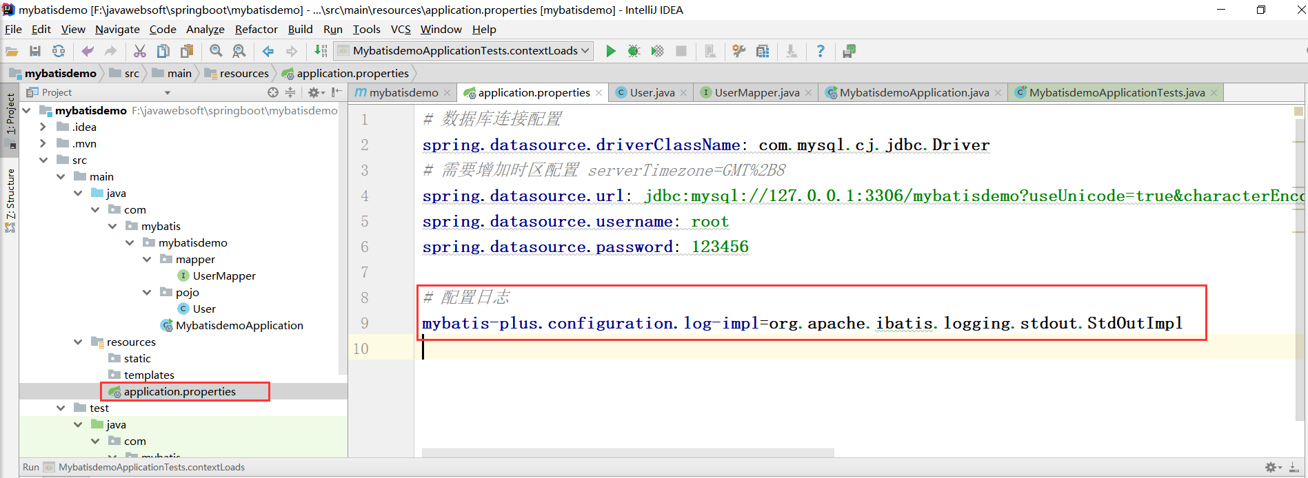 mybatis-plus.configuration.log-impl=org.apache.ibatis.logging.stdout.StdOutImpl