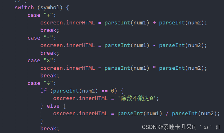 oscreen.innerHTML = '除数不能为0';