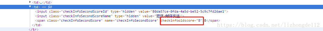<span class="checkInfoSecondScore" th:attr="checkInfoOldScore=${checkInfoSecondVo.score}" name="checkInfoSecondScore" th:text="${checkInfoSecondVo.score}" />