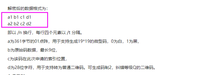 2、获取二维码加密数据,点击获取 步骤是【2.4 下载二维码包接口】,略。