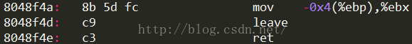 (注意,由于leave没有将push的值还原,所以mov -0x4(%ebp),%ebx这里手动还原了ebx的值(ia32中程序中用了ebx、esi、edi时,结束时必须还原(程序开始时也必须保存),因为这三个是被调用者负责保存的寄存器;而eax、edx、ecx则不必还原,因为这三个是调用者保存的寄存器。所以优先使用eax、edx、ecx可减少程序开始和结束时的开销))