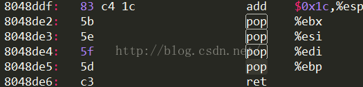 4 那么既然call,ret都只管了eip的值以及由存储eip引起的esp的改变,那么被调用程序中的栈结构变化怎么办?答案是子程序自己复原栈,具体就是你子函数push了几个,最后也要pop了几个(一般包括最后的pop %ebp);sub x,%esp了后,最后也要add x,%esp;当然还有上面介绍的leave,直接将esp指向ebp,然后pop %ebp,这样就直接复原了栈结构了(剩下的pop %eip让ret去弄!)