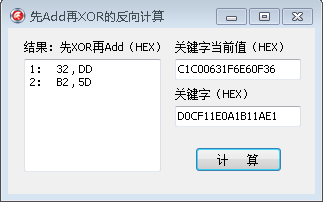 已知关键字的当前值是由关键字先Add某个数值再XOR某个数值得到的,理论上反向操作(先XOR再Add)的话,由于按字节运算了两次(Add和XOR),而一个字节最大可以表示256个数值(00 H至FF H),那么使用穷举法,最多需要计算256的平方= 65536 次就可以了。