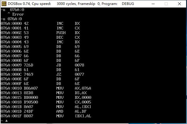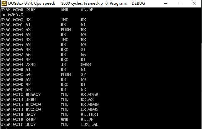 s: mov al,[bx] //将ASCII从ds:bx所指向的单元取出