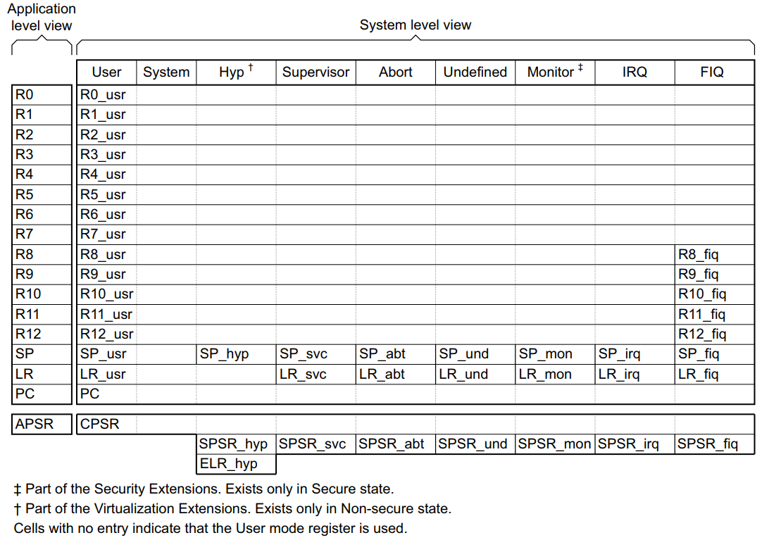 以上就是发嗲大雁最近收集整理的关于ARMv7-A 处理器窥探(1) —— 处理器模式1、处理器模式2、寄存器组织3、指令集的全部内容,更多相关ARMv7-A内容请搜索靠谱客的其他文章。