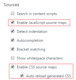 Chrome,devTools的Settings中开启JS和CSS的Source Maps功能。