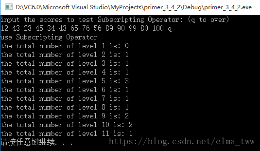 cout << "input the scores to test Subscripting Operator: (q to over)" << endl;