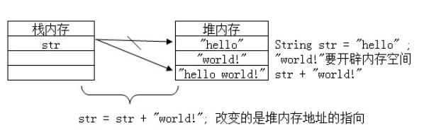 从上图可以发现,一个String对象内容的改变实际是通过内存地址的“断开-连接”变化完成的,而本身字符串的内容并没有发生变化。