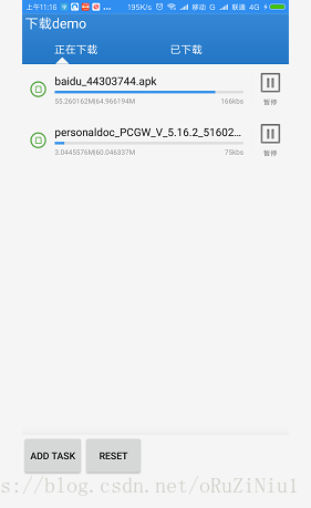 先介绍下下载器实现的功能,多线程下载,断点续传,多任务通知栏排队下载,wifi 拉包,联网自动恢复下载任务,非wifi 状态预定下载任务,定期清理下载缓存,多数据库存储之间的数据迁移。