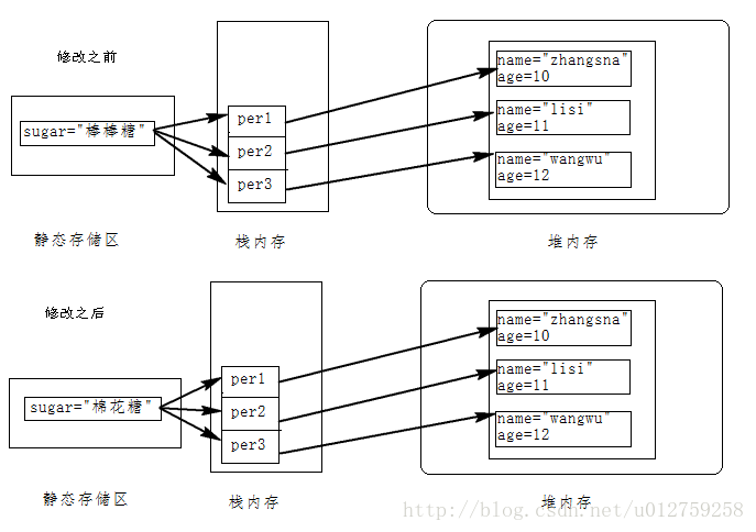 字符串变量存储一个对String对象的引用,它保存的是该String对象在内存中的位置,当我们声明和初始化变量时,它链接到字符串的初始值上。当执行赋值语句时,原始的链接将失去作用,而原始的字符串将被废弃掉,此时变量存储对新字符串的引用。这就意味着我们不能扩展String变量所引用的字符串,String对象被认为是不可改变的,即不能进行任何修改。