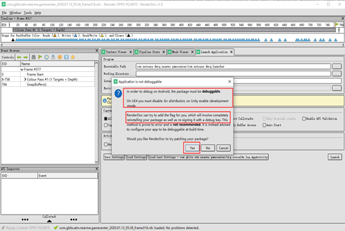 3.点击“Yes”对项目进行重新打包,使之能够用RenderDoc进行调试。