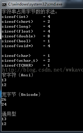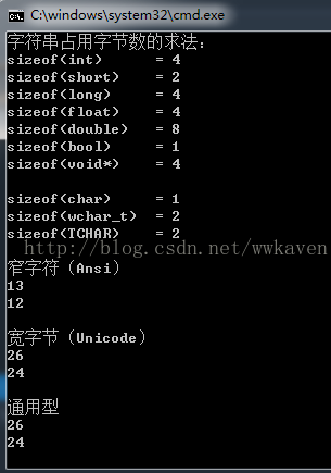 cout << "sizeof(TCHAR) = " << sizeof(TCHAR) << endl << endl;