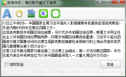 8 开始聊天,找到要聊天的微信好友,点击微信的“发消息”,微信伴侣已经自动启动。可以在微信伴侣里输入文字、表情、发送图片(可以多选,还可以拖放文件夹哦 ,嘿嘿 一般人我不告诉他)。