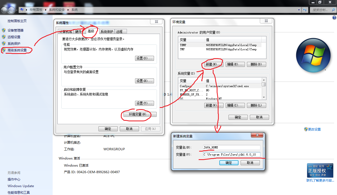 2 右击计算机管理,在高级选项卡中点击环境变量,然后点击新建,输入变量名和变量值