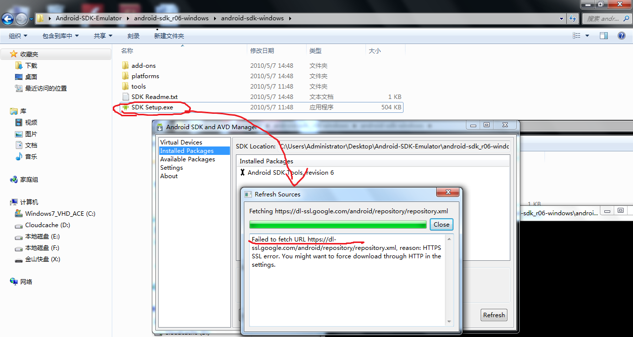 5 双击SDK安装软件,如果碰到错误"Failed to fetch URL…"