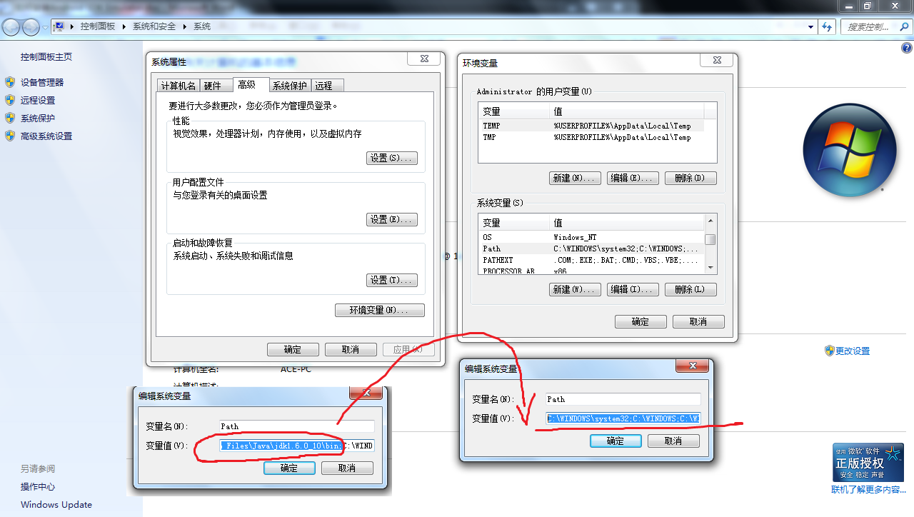4 找到Path变量,点击编辑按钮,随后在变量值前面添加"C:Program FilesJavajdk1.6.0_10bin;" (包括分号)然后全部确定。