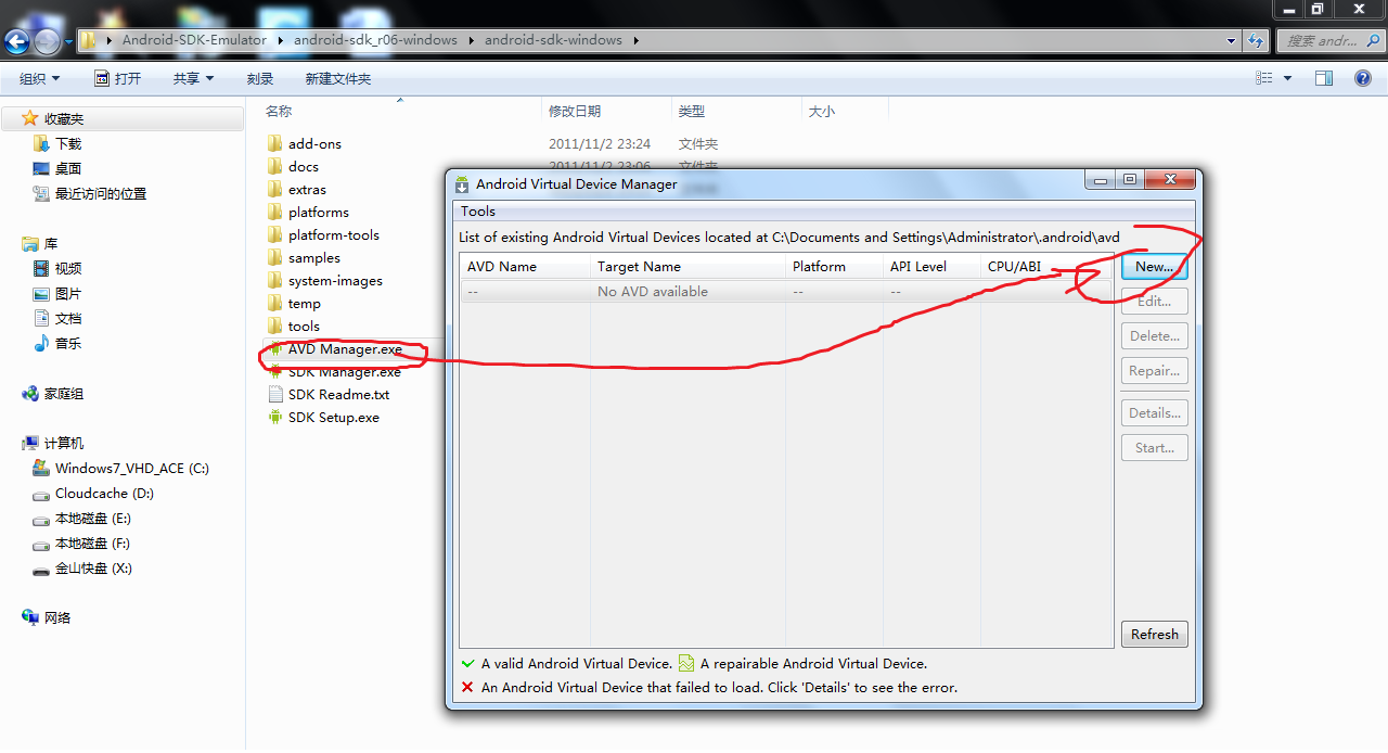 14 双击AVD Manager.exe运行,然后点击New按钮