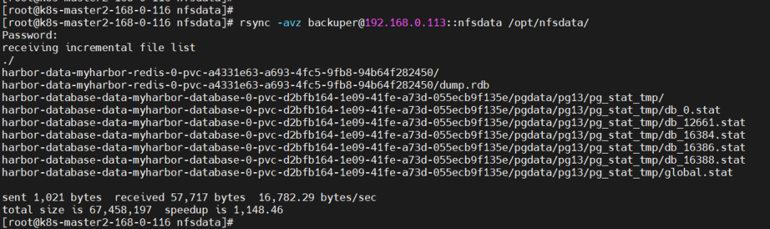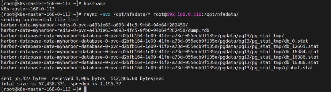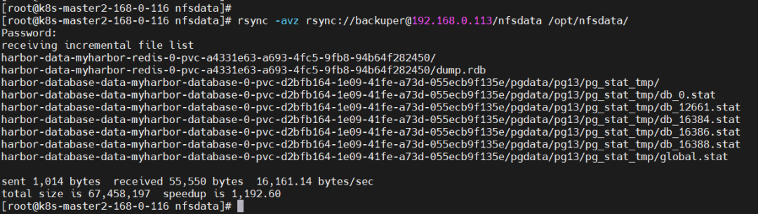 rsync -avz root@192.168.0.113:/opt/nfsdata/* /opt/nfsdata/