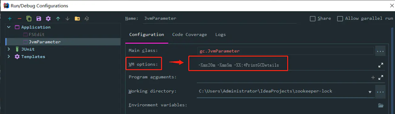 -Xmx20m-Xms5m-XX:+PrintGCDetails复制代码