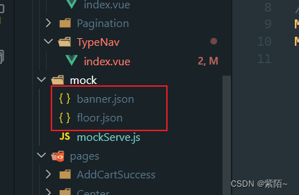 第二步:在src文件夹下创建一个文件夹,文件夹mock文件夹。将不同的数据类型封装为不同的json文件