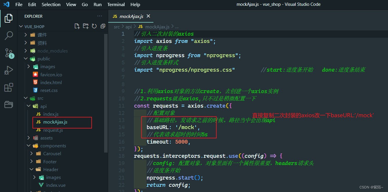 **第七步:**在API文件夹中创建mockAjax【axios实例:baseURL:'/mock'】