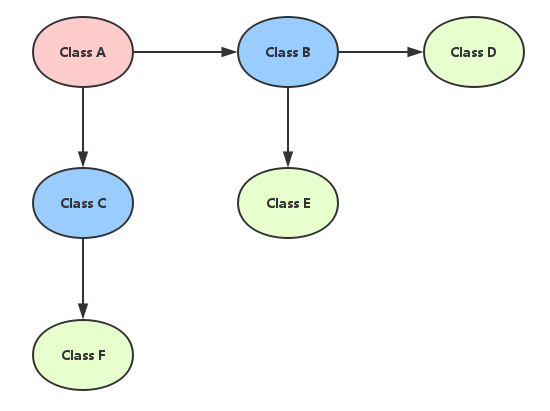 像是以下这张图,类 A 需要调用类 B 和类 C,而类 B 和类 C 又需要调用其他类如 D、E、F 等,假设类 D 是一个外部服务,那就会很难测,因为你的返回结果会直接的受外部服务影响,导致你的单元测试可能今天会过、但明天就过不了了