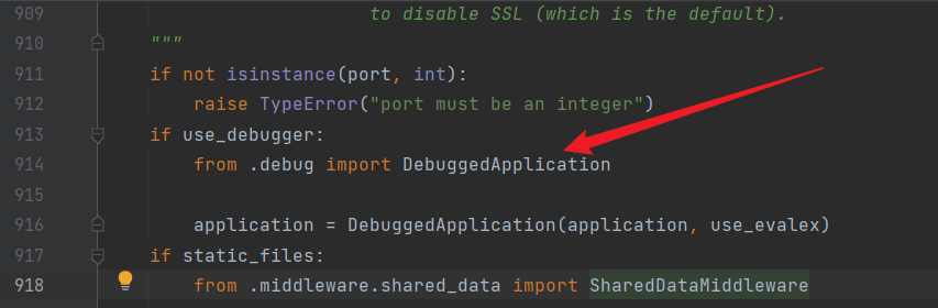此时进入了seving.py,找到了负责Debug的部分,PIN码是在debug状态下才有的,那这个部分很有可能存有PIN码生成部分,进去看看