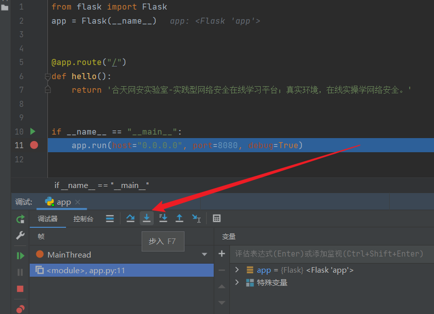 在run.app行下断点,点击调试
