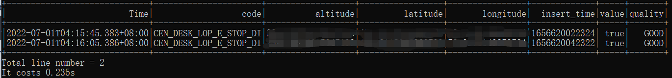 启动项目就查询出来了,这里我省略了altitude等几个列