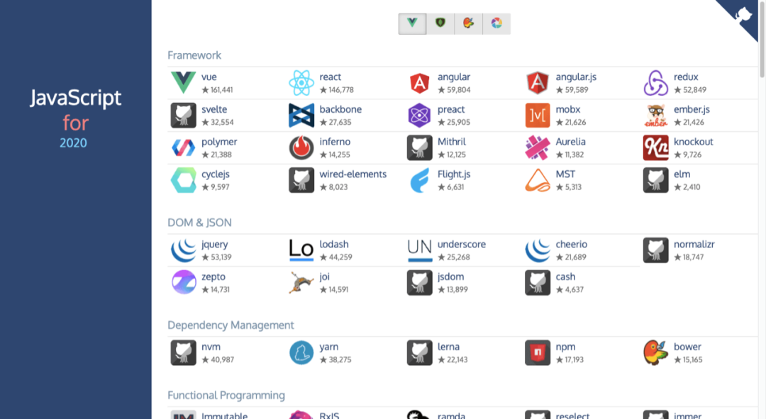 一个集合当下最流行的 JavaScript 代码库,显示流行排行,开发者可以轻松的找到想要最新的代码插件、工具和博客。
