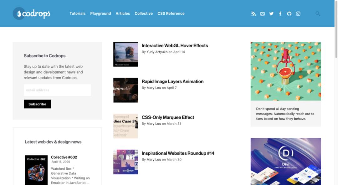 ● 16 Codrops - 网页设计开发博客