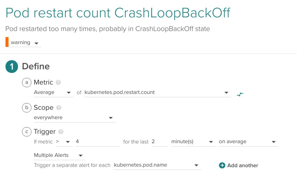 这是在整个基础架构中应用的一个示例,在过去的2分钟内检测到4次以上的重新启动: