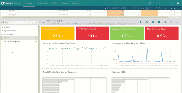 只有当你安装代码后,Sysdig Monitor代理才能从系统调用拦截中计算出来相应的指标。考虑HTTP响应时间或SQL响应时间。Sysdig Monitor代理程序在套接字上捕获read()和write()系统调用,解码应用程序协议并计算转发到我们时间序列数据库中的指标。这样做的好处是可以在不触及开发人员代码的情况下获得仪表盘数据和警报: