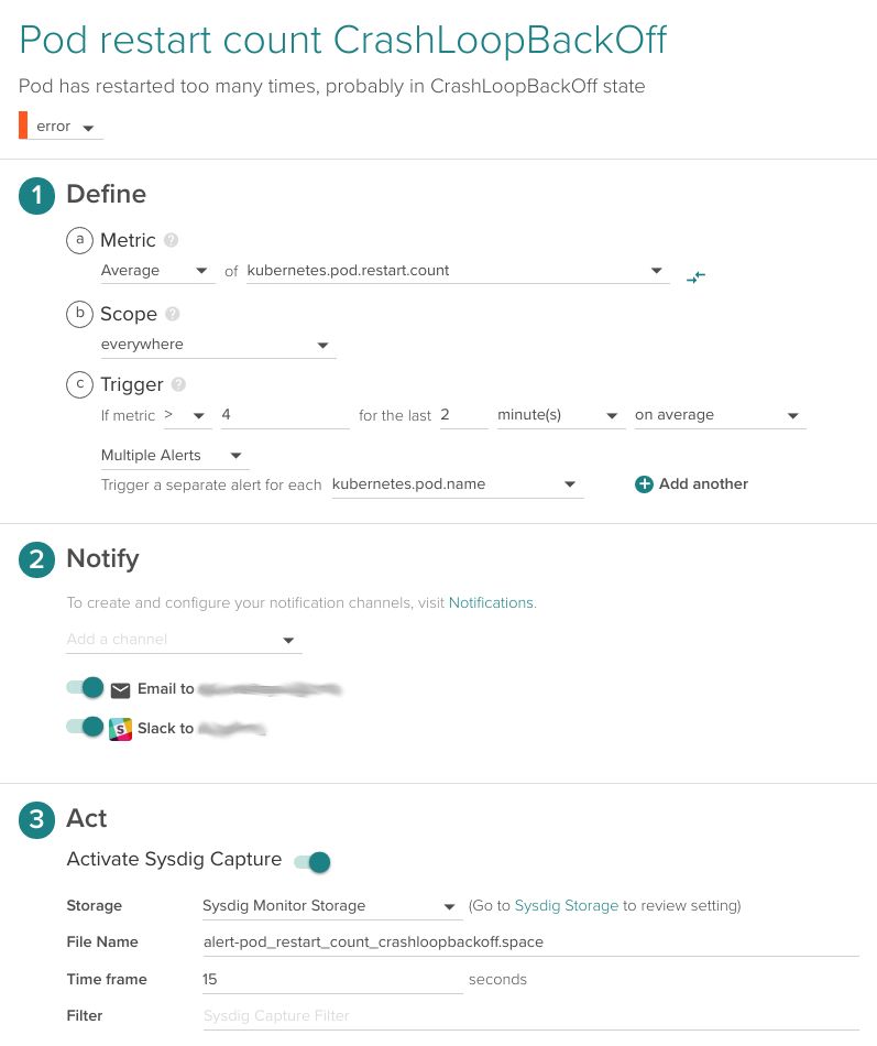 第一篇文章所述,Kubernetes将容器标记为一个deployment或者通过一个service进行暴露,在定义报警时就需要考虑这些因素,例如针对生产环境的报警(可能通过命名空间进行定义)。