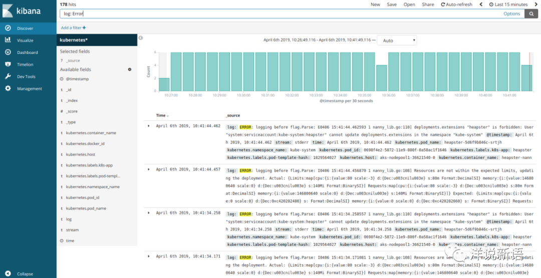 在Kibana中,您可以对日志执行临时查询,还可以构建仪表板以概述环境。