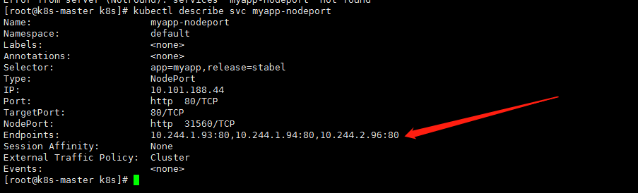你看在集群的任何机器上都可以PING通这个地址。我们来看看这个svc的详情