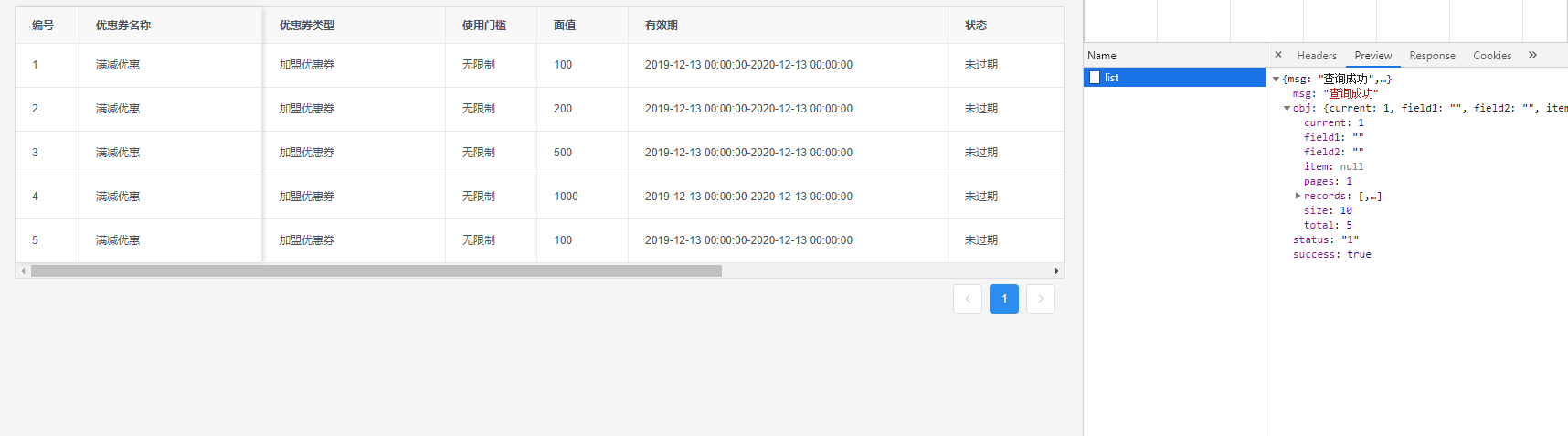 8、前端查询数据测试,有没有分页看你的了:(发现没有分页,那就可以去提bug了)